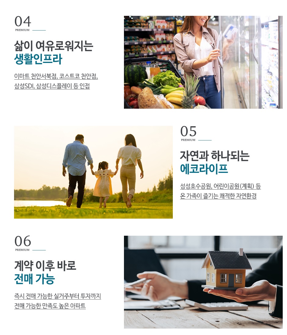 이 단지는 천안의 새로운 주거 중심지로 부상하고 있는 성성동에 위치하여, 풍부한 생활 인프라와 쾌적한 주거 환경을 제공합니다.