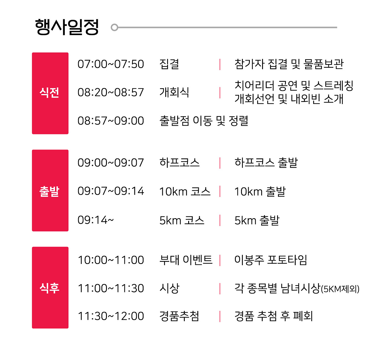 - 5km: 오전 9시 20분