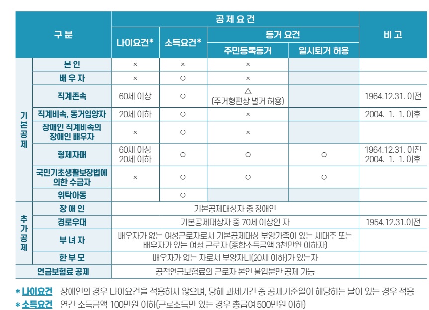 - 형제자매: 만 20세 이하 또는 만 60세 이상.